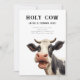 Invitación de cumpleaños de los niños de vacas sagradas con una vaca de aspecto impactante, diseño mínimo lindo con impresión de vacas en la parte de atrás para completar el aspecto, recuerda que hay muchos acabados de papel para elegir dependiendo del acabado que te guste.