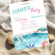 Estas invitaciones incluyen piscina, flotador de piscina, gafas, flores. Esta invitación se personaliza fácilmente para su evento simplemente añadiendo sus detalles.