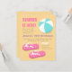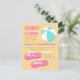 ¡Que tengan una fiesta de cumpleaños chill para los adolescentes con una fiesta de cumpleaños en la playa! La invitación, moderna y luminosa, incluye una bola de playa y un chanclo de rayas en la playa con una decoración de corazones diminutos en la correa. La página inversa es la de una pez estrella de almeja y rosa. Mezcla alegre de colores rosa, menta y violeta que contrasta con el color arena de la playa. Personalice fácilmente los datos de su fiesta.