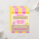 Una colorida invitación para fiestas de cumpleaños con tema de limonada. Cuenta con rayas rosas y amarillas con acentos de madera.