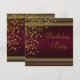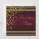 Invitaciones elegantes de fiesta de cumpleaños de vino tinto burgundy y dorado. Esta hermosa invitación de fiesta de color marrón y dorado se personaliza fácilmente para su evento agregando los detalles del evento, estilo de fuente, tamaño y color de la fuente, y redacción. Tenga en cuenta que todos los stickers, tarjetas y diseños de invitaciones que encontrará en Zazzle son gráficos impresos sin joyas reales, lazos, relieves, grabados o piezas o partes agregadas.