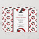Esta carta de invitación personalizada para la fiesta de cumpleaños de los chicas de voleibol es totalmente personalizable y presenta un patrón de bolas de voleibol negras, rojas y blancas en la parte delantera y trasera - personalizar su texto de invitación para la fiesta de cumpleaños sobre un fondo blanco con acentos de borde negro y rojo - los paneles negros y rojos de las bolas de voleibol se mezclan con un patrón kaleidoscópico de bonito floral y los paneles de voleibol blanco se mezclan con un patrón para una apariencia texturada que es artística y femenina - de katz_d_zynes