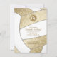 Esta invitación a la fiesta de cumpleaños con temática de voleibol muestra la imagen realista de un voleibol abstracto y estilizado que tiene paneles dorados y blancos silenciados - un patrón kaleidoscópico joso y giratorio artístico se mezcla con los paneles dorados del voleibol - personalizados con sus detalles fiestas - por katz_d_zynes