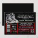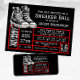Invitación de zapatillas rojas y negras con zapatillas rojas en un fondo de etiqueta de zapato negro y rojo. Esta invitación de zapatillas rojas y negras se personaliza fácilmente para su evento simplemente agregando sus detalles. También puede cambiar el color de fondo y el color del texto.