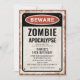 Invitación Fiesta de cumpleaños de zombi con letrero de CUIDA