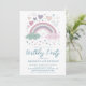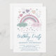 Invitación Fiesta de cumpleaños del arcoiris rosado y morado