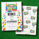 Un lindo tema de la fiesta de cumpleaños del castillo de saltos de "Bonza sobre". Un diseño de invitaciones de cumpleaños para niños personalizados perfecto para una fiesta de cumpleaños de fiesta de salto. Personalizar esta invitación de cumpleaños del castillo de recompensas "¡Abríchate!" con su propio texto y hágalo el suyo. ¡Ideal para los niños de cumpleaños!
