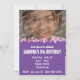 Esta invitación a la fiesta de cumpleaños de personalizable incluye puntos de polka rosados y morados, texto de personalizable, una plantilla de foto para tu foto.