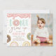 (H) Una hermosa y dulce invitación de cumpleaños para un chica (primer) cumpleaños. Los colores rústicos pastel combinan con cualquier estilo fiesta, con donuts dulces y confeti de colores. Diseñado para coincidir con nuestra colección temática de Donut.