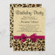La impresión de leopardo con una brillante invitación a la fiesta de cumpleaños del Chica Bow rosa fucsia es genial para la muchacha femenina con un toque de moda y estilo moderno. Los tonos de oro y de leopardo negro o guepardo de safari animal salvaje son la moda y la elegancia, y son perfectos para los chicas que cumplen 10 años o cualquier año, incluso para un adolescente, adolescente o adolescente.