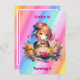 Invitaciones a la fiesta de cumpleaños del chica. Una adorable fiesta de cumpleaños con el tema del anime arcoiris invita a una adorable cachorro de anime, arcos, flores y anime.