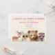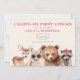 Animales salvajes de un fiesta rompen en rollo / festival de música inspirado en el tema de la fiesta de cumpleaños de los bosques, con cachorro de oso con piel rosa y rayo rosa sobre un ojo, mapache con mohawk rosa y corazón sobre un ojo, zorro con gafas de sol margarita, y ciervo adornado con manchas rosas.