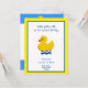 Invitación a la fiesta de cumpleaños del pato de caucho amarillo en amarillo y azul. Es fácil personalizar a ambos lados ahora con los detalles de su fiesta. Como cada palabra puede cambiarse, esto también se puede usar para otras ocasiones. Agradable para una fiesta de cumpleaños de un niño pequeño/bebé, especialmente si se incluyen juegos en agua o con agua. De la tienda de lumirala.