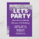 Invitación Fiesta de cumpleaños del Purpurina Purple Silver