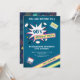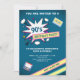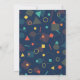Invite a sus huéspedes con esta divertida invitación de fiesta de cumpleaños con una tipografía vibrante con elementos coloridos sobre un fondo azul. Simplemente agregue los detalles de su evento en esta plantilla fácil de usar para convertirla en una invitación única. Girar la tarjeta para mostrar un patrón geométrico colorido en la parte posterior de la tarjeta.