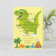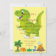Invitación a la fiesta de cumpleaños por el tema de los dinosaurios infantiles Esta divertida y linda invitación a la fiesta de cumpleaños de los niños presenta un dinosaurio gigante verde t-rex con un fondo amarillo claro. Permita que esta invitación ayude a establecer el tema para el próximo cumpleaños de su hijo. Para obtener más productos personalizados, envíe un correo electrónico a reviva.designs@gmail.com