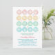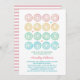 La invitación linda de la fiesta de cumpleaños con los anillos de espuma deliciosos cubiertos en el pastel que hiela y asperja. ¡Rosado, amarillo, verde, y azul! La parte posterior ofrece las rayas blancas y rosadas.