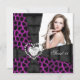 Invitación de Cumpleaños Dieciséis Dulce 16 Rosa Leopardo Salvaje Negro Blanco Corazón de Lazo Negro Estampado de Animal, Niña, Mujer Joven, Agrega Tu Foto