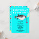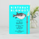Invitaciones creativas para una fiesta de cumpleaños con tema de pesca, con un pez gracioso que hace un deseo de cumpleaños.