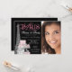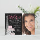 Invitación de cumpleaños Paris Sweet 16 con una hermosa Torre Eiffel plateada, elegantes regalos de París, zapatos de tacón alto con brillo plateado y elegante letra rosa de París en un fondo de color a su elección. Esta hermosa invitación de cumpleaños Paris Sweet sixteen es fácilmente personalizable para su evento simplemente agregando su foto y detalles del evento en el estilo de letra y redacción de su elección. Este es un diseño impreso sin diamantes reales, joyas, brillo, etc.