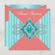 Invitación Fiesta de Cumpleaños Dulces 16 Turquesa Coral Diam