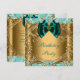 Hermosos remolinos de oro azul teal y dorado plantilla de invitación de cumpleaños. Esta elegante invitación de cumpleaños azul teal y dorada se personaliza fácilmente para su evento simplemente eligiendo el botón "¡Personalízalo!" para comenzar a agregar los detalles de su evento, estilo de fuente, tamaño y color de la fuente, y redacción. Tenga en cuenta que todos los stickers, tarjetas y diseños de invitaciones que encontrará en Zazzle son gráficos impresos sin joyas reales, lazos, partes o piezas en relieve, estampados o agregados.