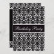 Invitaciones formales de encargo elegantes de la fiesta de cumpleaños para las mujeres y los chicas con un modelo blanco y negro hermoso y elegante del damasco del vintage. Este atractivo con clase invita se adorna ambos lados. Moda, invitaciones femeninas, de moda, modernas. OBSERVE POR FAVOR: TODO INVITA EN ZAZZLE TIENE IMÁGENES IMPRESAS DEL PLANO. El texto, la fuente y el color de la fuente pueden todos ser modificados para requisitos particulares. Si usted necesita la ayuda que modifica su producto para requisitos particulares por favor éntreme en contacto con a través de mi tienda. Me placeré ayudar.