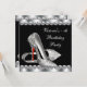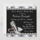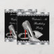 Invitación de fiesta de cumpleaños de mujer con zapatos de tacón alto y diamantes brillantes. Esta hermosa invitación de cumpleaños 40 para mujer en negro y blanco se personaliza fácilmente para su evento agregando los detalles del evento, estilo de fuente, tamaño y color de la fuente y redacción.