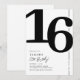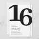 Presentamos una invitación de cumpleaños número 16 en blanco y negro atemporal que combina perfectamente el encanto clásico del número de letra serif negrita '16' con una plantilla personalizable moderna y fácil de usar. Esta invitación no es solo una tarjeta, es un recuerdo significativo para atesorar el hito de cumplir 16 años.