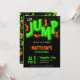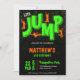 Prepárate para saltar a una celebración llena de diversión con esta vibrante invitación de cumpleaños con tema de fiesta en trampolín. Con colores neón verdes y naranjas, patrones de pintura salpicada y gráficos juguetones, esta invitación establece el tono para una fiesta emocionante y activa. Perfecta para niños que aman saltar, jugar y divertirse. Personalízala con el nombre del niño, la edad y los detalles de la fiesta para crear una invitación memorable. La parte trasera muestra un diseño de pintura salpicada brillante y colorido que complementa perfectamente el tema. ¡Perfecta para fiestas en trampolines o parques de diversiones con luces de neón!