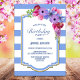 Invitación Fiesta de cumpleaños floral Blue Stried Lavender