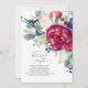 Peón rojo borgoñona, rosas ruidosos y follaje azul marino elegantes invitaciones para fiestas de cumpleaños