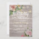 Invitación Fiesta de Cumpleaños Flores de Madera Rústica y Lu