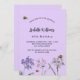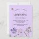Fondo violeta de color lavanda. Decorado con abejas y flores silvestres pintadas en violeta y rosa. Personalice y agregue un nombre y detalles del fiesta.