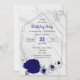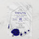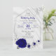 elegante romántico flor azul real y hojas de color gris plateado botánico geométrico invitación de fiesta de cumpleaños de lujo Los detalles del purpurina son simulados