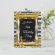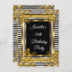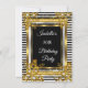 Invitación Fiesta de cumpleaños Gold Black Stripe Floral