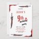 Invitación a la fiesta de cumpleaños de Boy Red Sword Red, White y Black. Ninja.