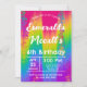 ¡Celebra con un toque de color! Esta invitación de fiesta vertical vibrante presenta un fondo ombre de arcoíris brillante con confeti juguetón, perfecto para un cumpleaños infantil animado o cualquier celebración alegre.
