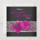 Invitación de cumpleaños número dieciséis dulce con leopardo rosa negro caliente. Esta invitación de fiesta rosa caliente se personaliza fácilmente para su fiesta o evento simplemente eligiendo el botón naranja "¡Personalízalo!" para comenzar a agregar los detalles de su evento, estilo de letra, tamaño y color de letra, y redacción. Tenga en cuenta que todos los adornos para pasteles, pegatinas, tarjetas y diseños de invitaciones que encontrará en Zazzle son gráficos impresos sin joyas, lazos, partes o piezas elevadas, grabadas o añadidas reales.