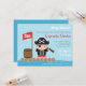 ¡Consiga sus niños las huéspedes excitadas con una invitación del tema del pirata con la perspectiva de una caza del tesoro! Esta invitación del pirata tiene un muchacho lindo que se vista como capitán del pirata con el gorra de la bandera pirata, el remiendo del ojo y un telescopio de navegación. Él está en una balsa de registro de madera con un barril y una bandera roja que usted puede indicar la edad del muchacho del cumpleaños. Bien, todos los piratas tendrán que comenzar tan donde. ¡Personalice fácilmente con sus detalles del fiesta y utilice la lengua del pirata de la diversión como ahoy compañeros y la guarida conforme al tema del pirata!