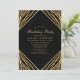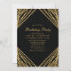 Invitación de Fiesta de Cumpleaños Líneas Abstractas Geométricas Oro Negro. Este diseño abstracto moderno y elegante presenta líneas brillantes de purpurina dorada con confeti sobre un fondo negro sólido.