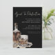 Elegante Invitación de cumpleaños con temática de Whiskey negro. Este sofisticado diseño presenta un fondo negro audaz con fuentes en blanco roto para un aspecto llamativo y moderno. La frase "Aged to Perfection" aparece en una elegante caligrafía manuscrita en la parte superior para una presentación elegante. Un gran ilustracion acuático blanco y negro con una botella de whisky, un vaso y un hielo se ubica en la esquina inferior izquierda, añadiendo un elemento visual refinado. Los detalles del evento están dispuestos en el lado derecho en una fuente serif clásica, manteniendo el diseño limpio y equilibrado. La espalda negra lisa mantiene el foco en el diseño frontal. Perfecto para los cumpleaños de un hito como un personalizable número 50 pero fácil para cualquier edad. Disponible como una invitación impresa o un archivo digital descargable para enviar e-mail o imprimir localmente.