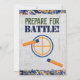 Una invitación de fiesta de estilo militar inspirada en nerf. Con patrones de camuflaje, soldados sosteniendo blasters y dardos, ¡munición volando! Diseñado por www.invitecentral.com