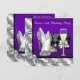 Zapatos negros y morados elegantes de tacón alto, bolso e invitación a una fiesta de cumpleaños con copa de champán. Esta hermosa invitación de cumpleaños morada para mujer se personaliza fácilmente para su evento agregando los detalles del evento, el estilo de letra, el tamaño y color de la letra, y el texto. Tenga en cuenta que todas las pegatinas, tarjetas y diseños de invitaciones que encontrará en Zazzle son gráficos impresos sin joyas, lazos, partes o piezas en relieve, estampados o añadidos.