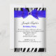 Invitación Fiesta de cumpleaños negro de Zebra Royal Blue Hig