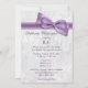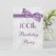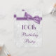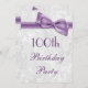 Elegantes invitaciones para la Fiesta de Cumpleaños de las Mujeres. La fiesta de cumpleaños de una mujer de cien o cien años invita. Hermoso fondo blanco de damasco con un bonito, elegante morado / lilac / lavanda arco y la imagen de cinta. Estas invitaciones glamorosas, modas y elegantes son bellamente sofisticadas y están decoradas/impresas en ambos lados.POR FAVOR, TEN EN CUENTA QUE Todas las invitaciones en Zazzle tienen imágenes impresas planas. Imágenes de bronce y cinta compradas de diseños digitales por elena. Si necesitas ayuda para personalizar tu invitación, por favor contacta conmigo a través de mi tienda y estaré encantado de ayudarte.