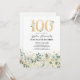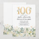 Invitación Fiesta de cumpleaños número 100 floral verde y bla