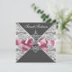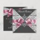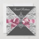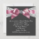 Invitación a la fiesta de cumpleaños número 16 con diamantes blancos, lazo rosa y negro.