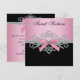 Invitación elegante de fiesta de cumpleaños número 16 con diamantes blancos, lazo rosa y detalles negros. Esta bonita invitación de cumpleaños se personaliza fácilmente para tu evento agregando los detalles del evento, estilo de letra, tamaño y color de la fuente, y redacción.