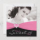Invitación a la fiesta de cumpleaños número 16 con corazón rosa y negro. Agrega tus detalles al frente y atrás simplemente eligiendo el botón naranja "¡Personalízalo!" para comenzar a agregar los detalles de tu evento, estilo de fuente, tamaño y color de la fuente, y redacción. Ten en cuenta que todos los diseños de invitaciones que encontrarás en Zazzle son gráficos impresos sin joyas reales, lazos, relieves, grabados o piezas o partes agregadas.